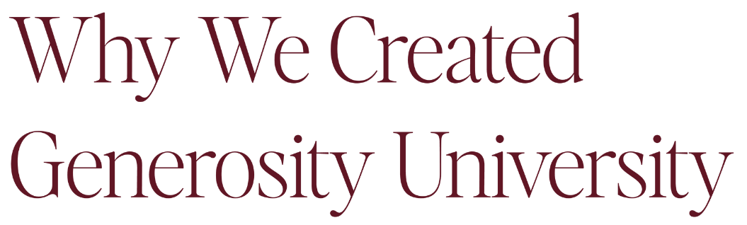 Generosity University equips the church to inspire, empower, and disciple people in one of the most overlooked areas of spiritual formation.